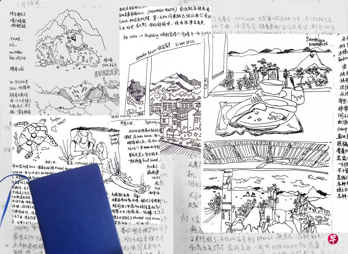 但其实快活的时候是很难下笔的(也有年纪大了特种兵观光完一天后,无力提笔倒头就睡的嫌疑),拿到那几张A4纸后,每天就寥寥写上几行,匆匆地便总结了今日。是有点分裂的,没纸了就焦虑,拥有了价值就大跌,几张纸草草地往书包一塞就走了,刚开始四处寻找的珍贵纸张资源得到了如同厕纸般的待遇。近几年似乎更喜欢在最后一天,一次性写下整段旅程,与其说是记录更像是回忆录。旅程的末段正是惆怅搅乱思绪的时候,快活离我而去,现实世界的逼近将我抽离出快乐繁衍出来的另一个自我,冲洗干净并返厂重设。当我不情不愿地叫醒沉睡在家的那副躯壳时,半死不活的状态便是文字重新拥抱我的时候,由此看来患得患失的惆怅的确是我本人提炼文字的要素,但也有很大可能是我仍缺乏火候的因素。