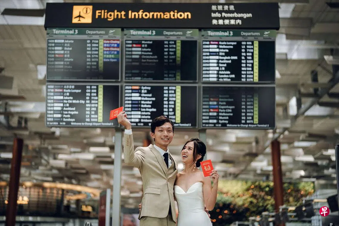 说起印象深刻的一次旅行,是在土耳其伊斯坦布尔的惊喜求婚。刘建胜精心策划,以漫天飞起的热气球为背景,那天也刚好天公作美,热气球可以起飞,他专程请摄影师捕捉浪漫的求婚画面。后来两人的结婚照也和旅行有关,地点选在樟宜机场,是每次见面一起出发的地方,意义非凡。
