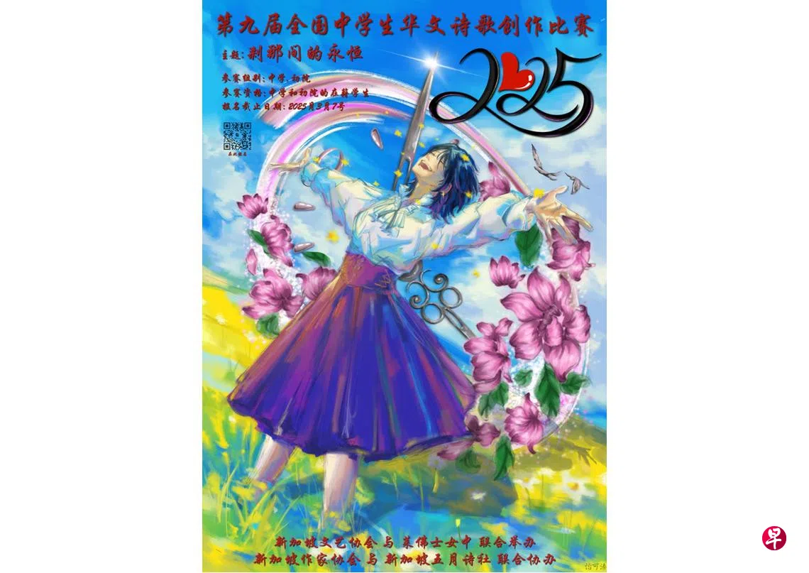 由新加坡文艺协会与莱佛士女中联办,新加坡作家协会与新加坡五月诗社协办的“2025年第九届全国中学生华文诗歌创作比赛”正在征集作品。