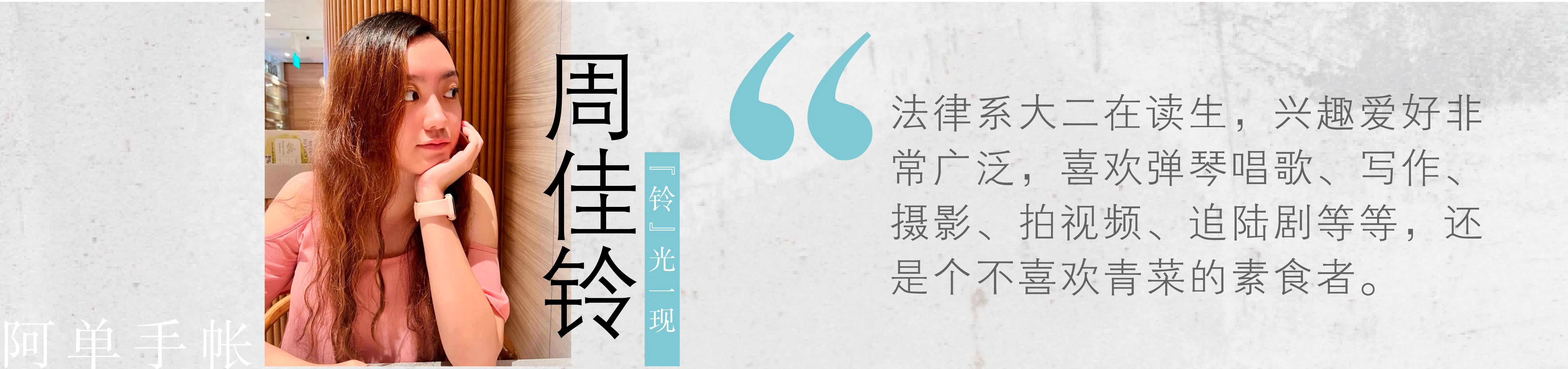 我喜欢在写作业或复习时,放一个小玩偶在旁边,既是精神寄托,也像个“监督员”或学习搭子一样陪着我。目前摆在桌上的是朋友送我的玩偶,它对我有三重意义:一、它是我最喜欢的演员——成毅所饰演的角色;二、它对应的角色是电视剧《底线》中的周亦安,一名充满朝气和正义感的年轻法官;正好适合修读法律系的我,希望将来也能成为像他一样优秀的法律工作者;三、它承载了朋友对我学业的祝福,更是我们友谊的象征。建议同学们也选择一个属于自己的精神吉祥物,让你在感到疲惫时,能有个精神支柱以及坚持的动力,提醒自己不忘初心。
