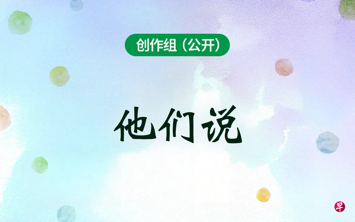 新空下2024创作合辑:《他们说》《他们说》的词曲是由裕廊先驱初级学院的梁育榛所创作。 本歌曲由弹唱人制作室统筹制作。所有入选作品的词曲版权归属推广华文学习委员会。浏览“新空下”专题页面,就可以知道更多相关信息! 新空下新谣上一篇【字食族之对话】何陈沁蕊:我们之间下一篇张子奕:聂鲁达——面包女人 盐铁男人购买此文章