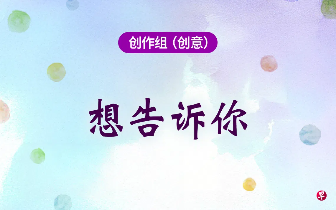 新空下2024创作合辑:《想告诉你》《想告诉你》是由新加坡国立大学的李欣融作词,庄佳云作曲。 本歌曲由弹唱人制作室统筹制作。所有入选作品的词曲版权归属推广华文学习委员会。浏览“新空下”专题页面,就可以知道更多相关信息! 新空下新谣上一篇《取火》特别企划:100年前出生的三岛由纪夫,100年后我们想到他的是?下一篇新空下2024创作合辑:《这一路走来》购买此文章
