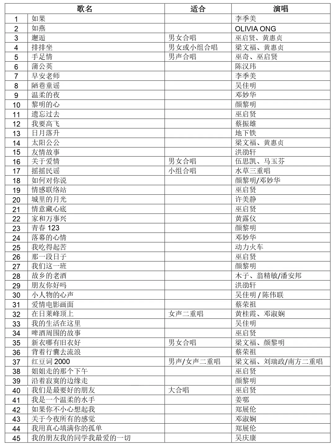 3. 比赛所选唱的歌曲必须是歌单内的指定歌曲。如果选唱歌单以外的歌曲,参赛者将被取消资格。