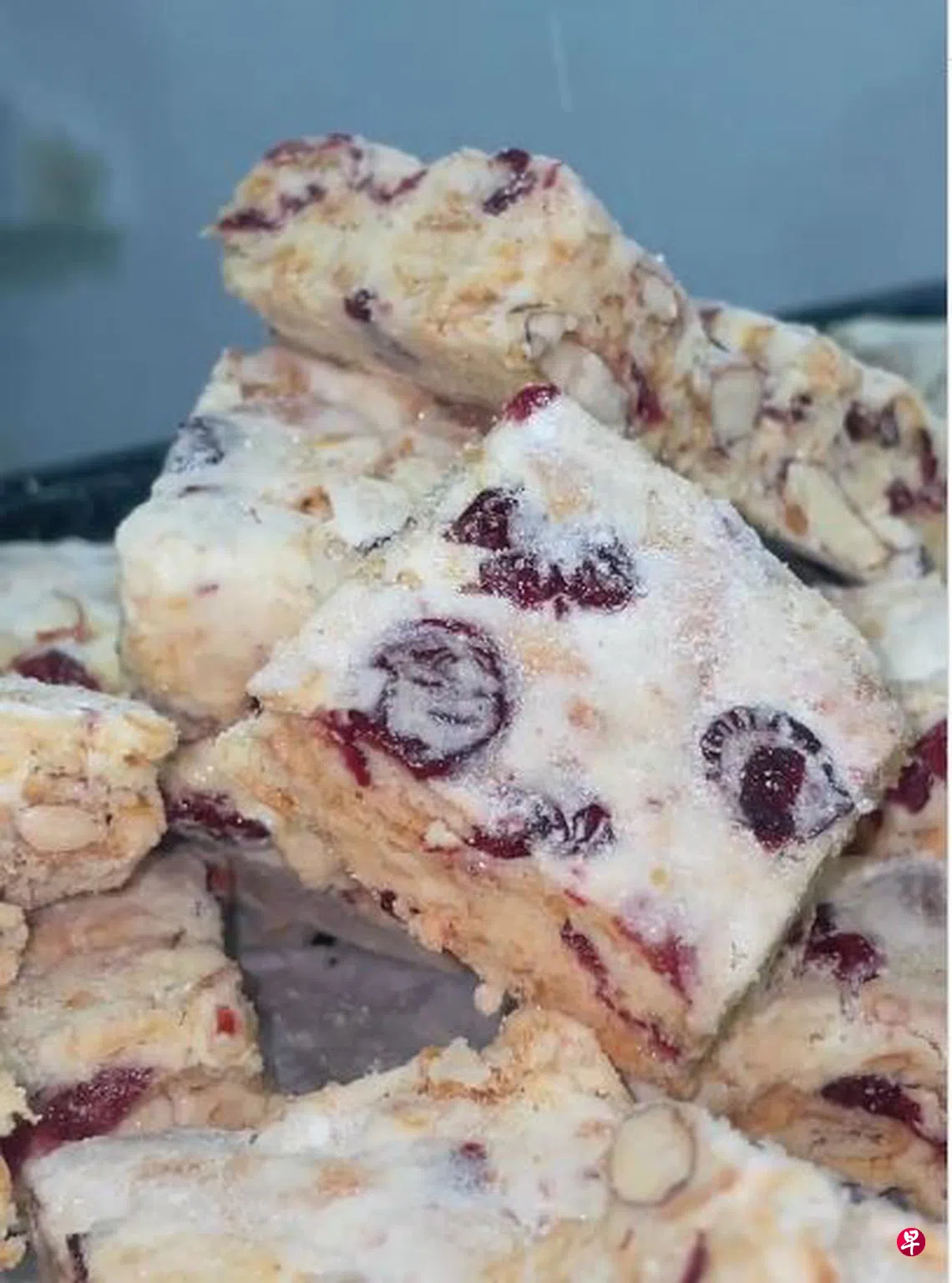 “尝尝。”她总是把第一块切给我。刚出锅的雪花酥还带着温度,咬下去时能听见“咔嚓”一声脆响,接着便是绵软的糖芯裹着果仁的香气在口中化开。那甜味很特别,不是糖果那种直白的甜,而是带着焦糖的醇厚,混着花生芝麻的油脂香,最后以蔓越莓的酸味收尾。我总舍不得大口吃,要一点一点地抿,让那滋味在舌尖多停留一会儿。