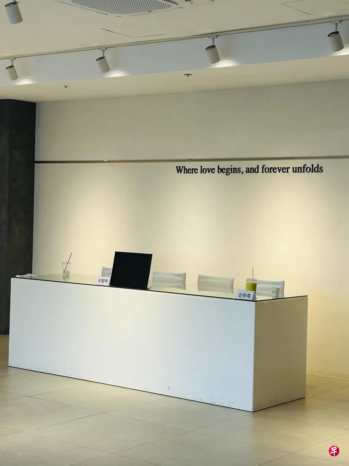 新娘是中国人,新郎是美国韩裔,两个人是在首尔工作时认识的。婚礼场地很漂亮,教堂式的主舞台,错落的玫瑰花,两侧摆着藤编座椅,一边是新郎家属,一边是新娘家属。礼堂侧面是一整面的落地窗,俯瞰着整个首尔。我们五个一起跳舞的女孩背着书包进场后,有工作人员过来,把我们带到了新娘家属区的第一排。我们几个面面相觑,没敢坐:前排不是该留给新娘的亲朋好友?工作人员摆了摆手,示意不用。