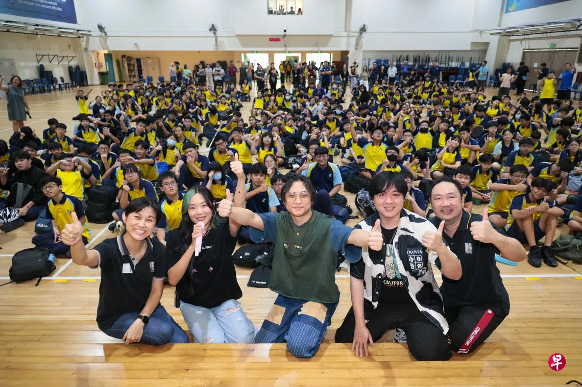 5月19日,他们来到务立中学,为逾千名学生带来一场动人的演出。除了演唱多首耳熟能详的新谣歌曲,现场也穿插了趣味问答环节,学生们热情参与,气氛热烈。