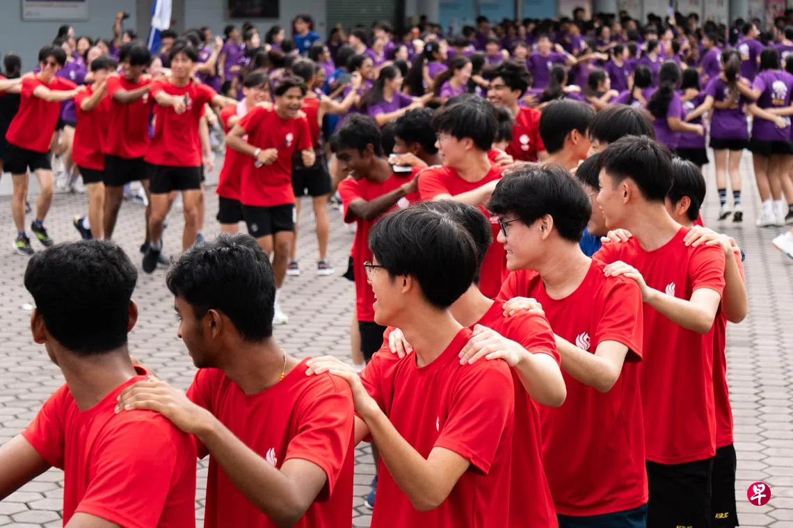 完成4公里赛程后,学生们丝毫不显疲态,反而以更高涨的热情投入庆祝环节。绿(Artemis)、红(Helios)、紫(Athena)、蓝(Poseidon)四个组别的学生,在学生会的带动下,纷纷跳起象征各自精神的“战舞”,尽情展现团队精神。
