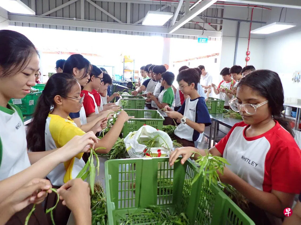 中二仁爱班学生在校内食堂协助清扫和整理工作,亲身体会食堂职工每日工作的辛苦。学生一人拿一块抹布,认真擦拭桌面,对齐椅子并清扫地面。中二恒毅班则在公益组织“愿之心”(Willing Hearts)参与食物准备工作,帮忙择菜及清洗。尽管过程难免枯燥劳累,但大家仍全力以赴。中二勤学班则前往养老院看望年长者,陪伴在侧,送上暖心问候。