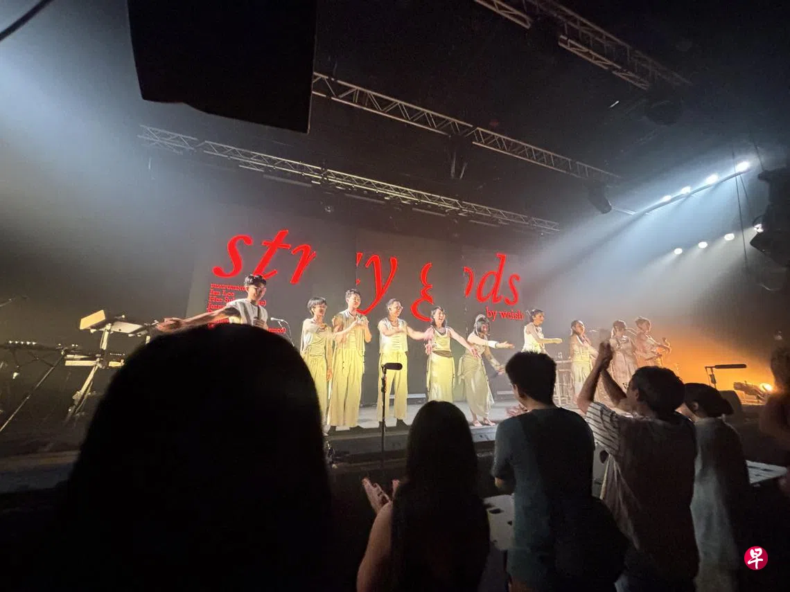 “今日想傻因为你哦”——反复呢喃便成电子舞曲,再衬以鲜红灯板同耀眼闪光,简直置身锐舞(rave)派对。台上weish连手四位助唱及一众乐手忘我合欢,台下观众随之不禁集体骚动身躯。如同下了降头,一首紧挨一首,你我皆可在这,挖掘心诚、接纳自身。