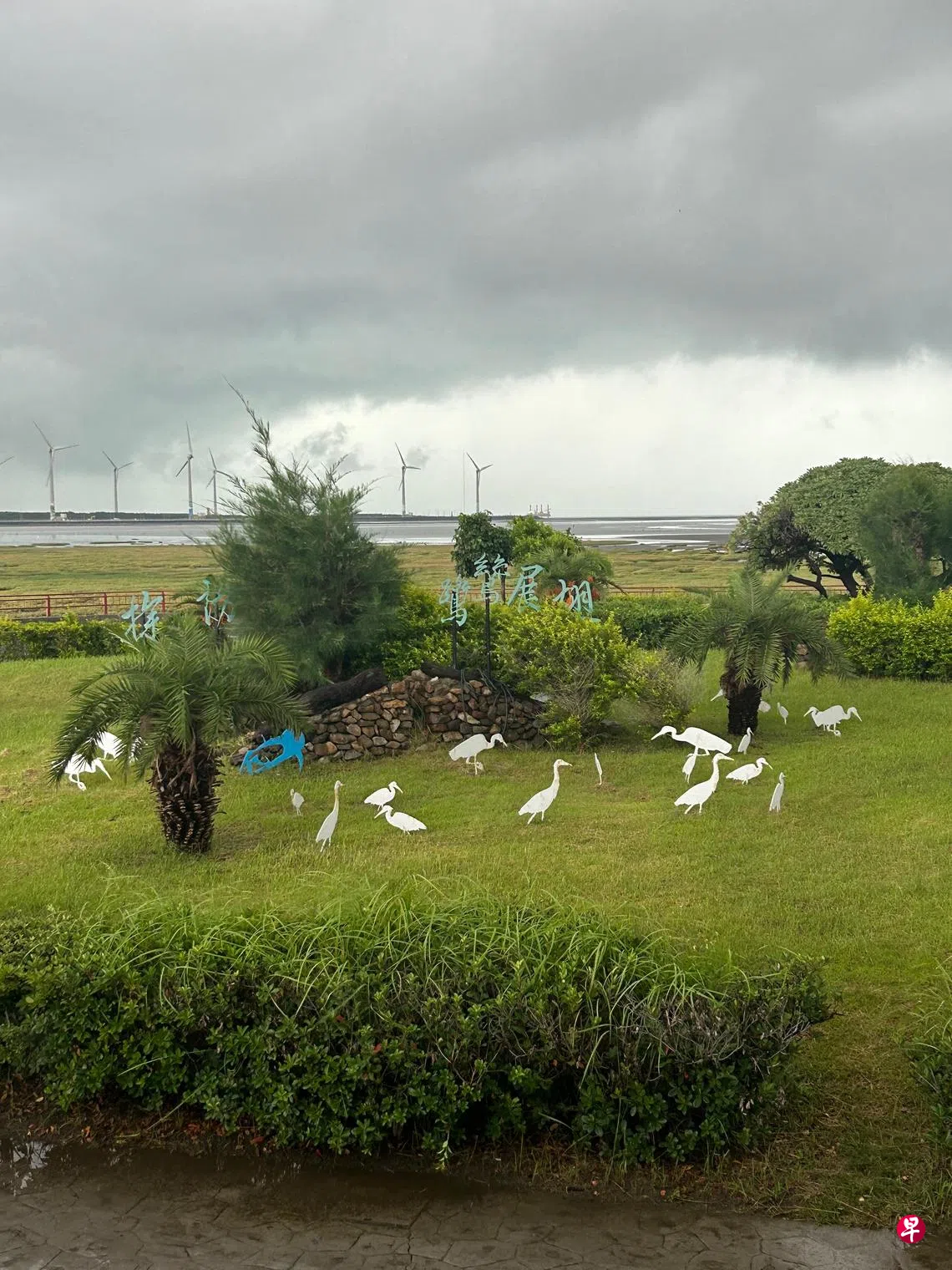 隔天下台中时才发现大事不妙,抵达台中就大雨不断。入住青旅时,柜台人员提醒我:“今天高美湿地应该是看不到夕阳了。”我当时是报了半日游团,知道大概无望,但已无法取消,只能硬着头皮前往,心里仍抱着一丝希望。或许幸运可以看到呢?谁知在高美湿地等待我的只有满天的乌云与强风,风好像能把我整个人吹走,连雨伞都被吹到变形。我在木栈道上逆风而行,走到一半感觉风越来越大,害怕自己真的被吹走立即返回。