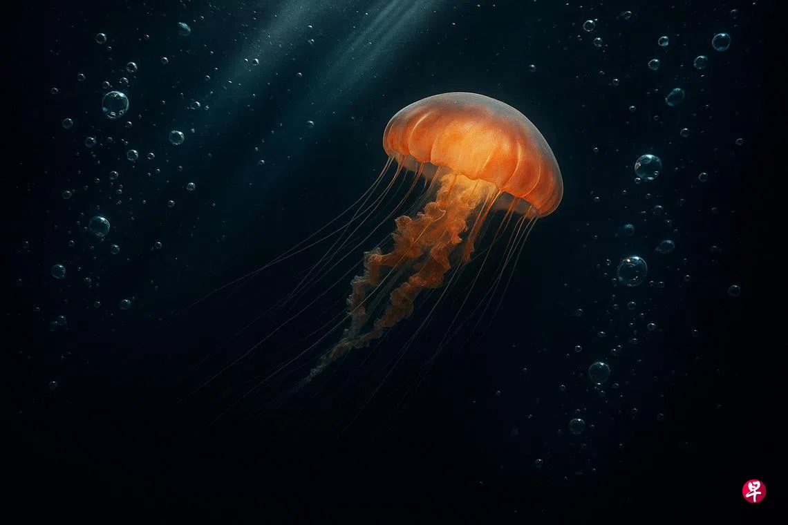 她不再是只身的水母,而是一片海洋里的一朵花。她盛开在海洋里,盛开在海草间。有小鱼儿在她的触角中穿梭,她保护着它们,它们也为她寻来她喜爱的微生物来吃。