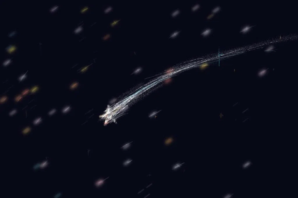 我低头瞥了一眼便撞见了橙子那两颗大眼睛,黑得像夜空似的。汽车的头灯在它眼里好像一颗颗星星,让我有些厌烦。作为马上要上中文系的学生,我总觉得星星这个意象太过浪漫,不是代表梦想就是代表希望,反正一定是某种理想的生活状态。嗯,我高中写作时期还挺喜欢用这个意象的。我往上看真正的夜空,城市里是没有星星的,或者至少看不到。