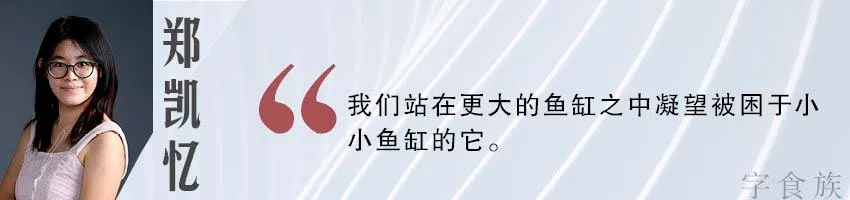 我将脸贴在廉价的玻璃上,那是我第一次如此近距离地观察一条鱼,是一条好傻气的红狮头金鱼。它贴得玻璃很近,我们之间只有一个倒影的距离。是我的倒影。我在水里看到了我自己。我看见我们以几乎同样的侧脸,面对对面同样深邃的另一块玻璃。同样微凸的眼球,死死以同样近乎完美的角度卡进眼眶骨里,是为了在某些允许松动的时刻,流入同样的蓝又流出同样的蓝。它继续游啊游,离我越来越远,然后越来越近,我知道它一直会在这几十平方米内为我停留。