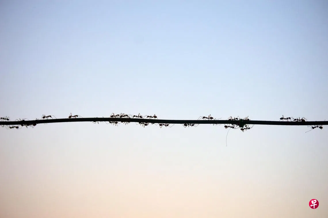 我被拖拽进那段往事,与蚂蚁共处的往事。背包里的苏打饼干无法逃过它们敏锐嗅觉。野外的生存法则让人忽略一切。掸掉蚂蚁,闭着眼睛,硬吞下去。无意间掉落的碎屑,就会变成一条条红线,红蚂蚁一只只从橄榄绿军衣上踏过去。
