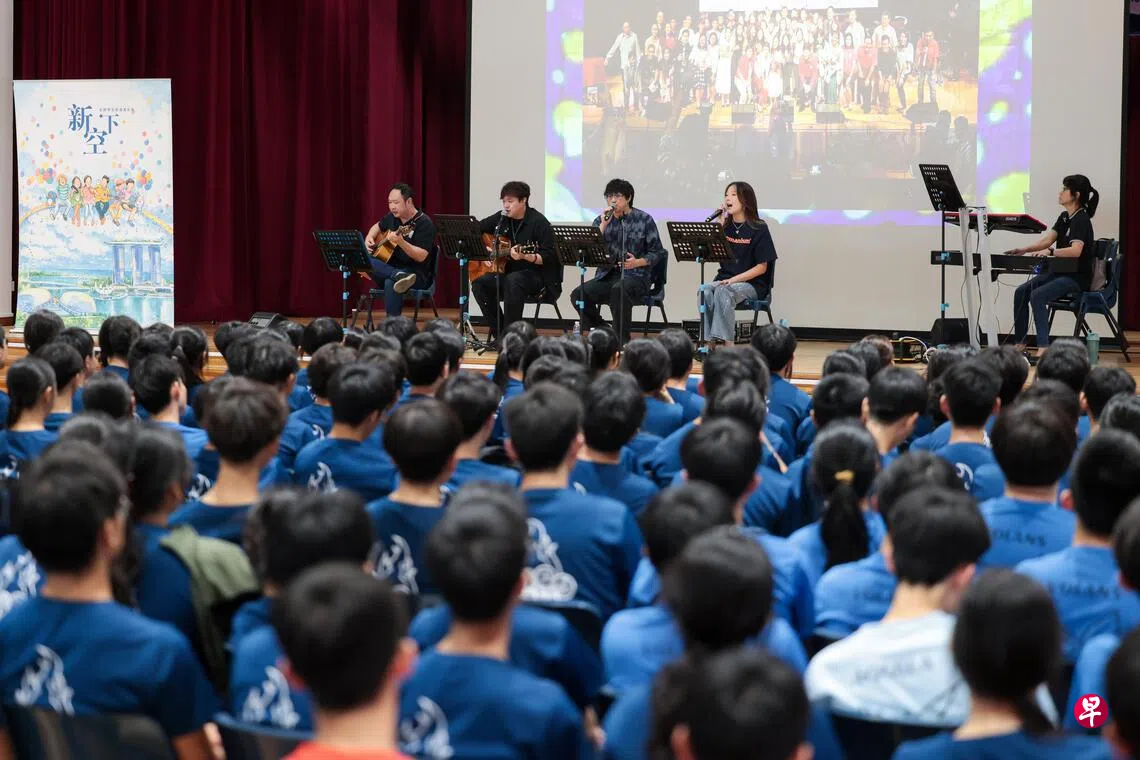 “新空下”2026年首场音乐分享会于2月24日在裕廊先驱初级学院礼堂举行。常年合作伙伴弹唱人工作室的五位音乐人为约380名学生带来现场演出。