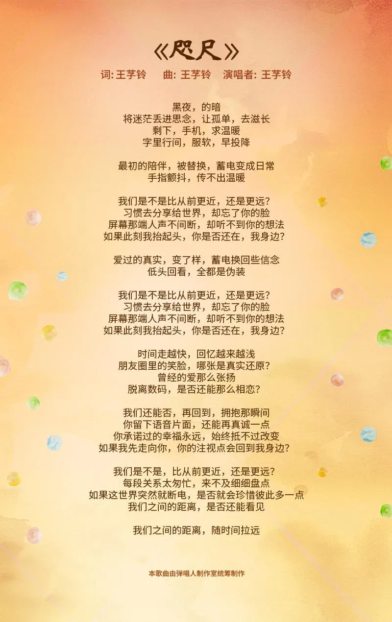 新空下2025创作合辑:《咫尺》《咫尺》的词曲是由裕廊先驱初级学院的王芓铃所创作。 本歌曲由弹唱人制作室统筹制作。所有入选作品的词曲版权归属推广华文学习委员会。浏览“新空下”专题页面,就可以知道更多相关信息! 新空下新谣上一篇高静娴:初级大人下一篇新空下2025创作合辑:《烛光晚餐》购买此文章