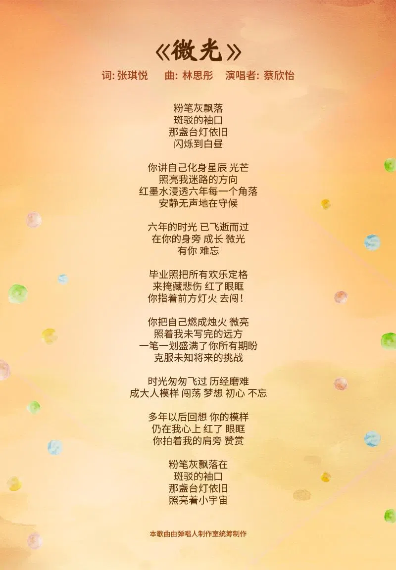 新空下2025创作合辑:《微光》《微光》是由新加坡艺术学院的张琪悦作词,林思彤作曲。 本歌曲由弹唱人制作室统筹制作。所有入选作品的词曲版权归属推广华文学习委员会。浏览“新空下”专题页面,就可以知道更多相关信息! 新空下新谣上一篇新空下2025创作合辑:《小鱼》下一篇【取火】王玮:七号街道购买此文章
