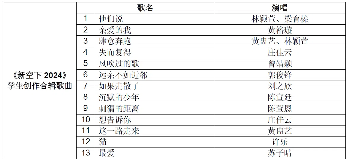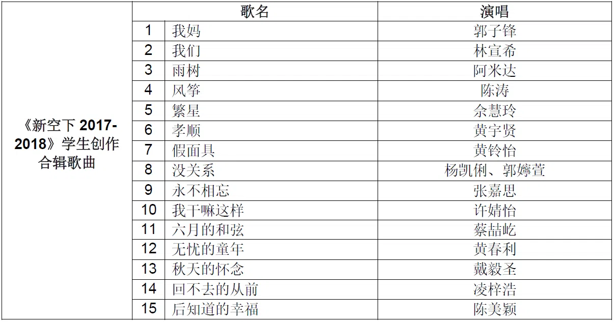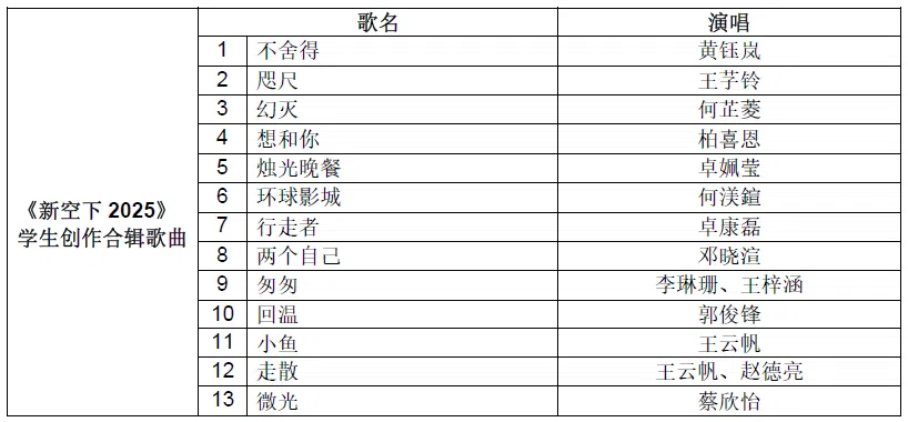 新空下2017-2025的学生创作合辑歌曲(可上网聆听)