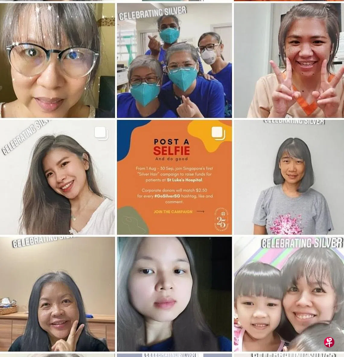 今年庆祝25周年的圣路加医院本月开始举办筹款活动#GoSilverSG,资助医院里来自低收入家庭的患者。公众只须按照下列步骤上载头发变白的自拍图,即可帮忙筹款。