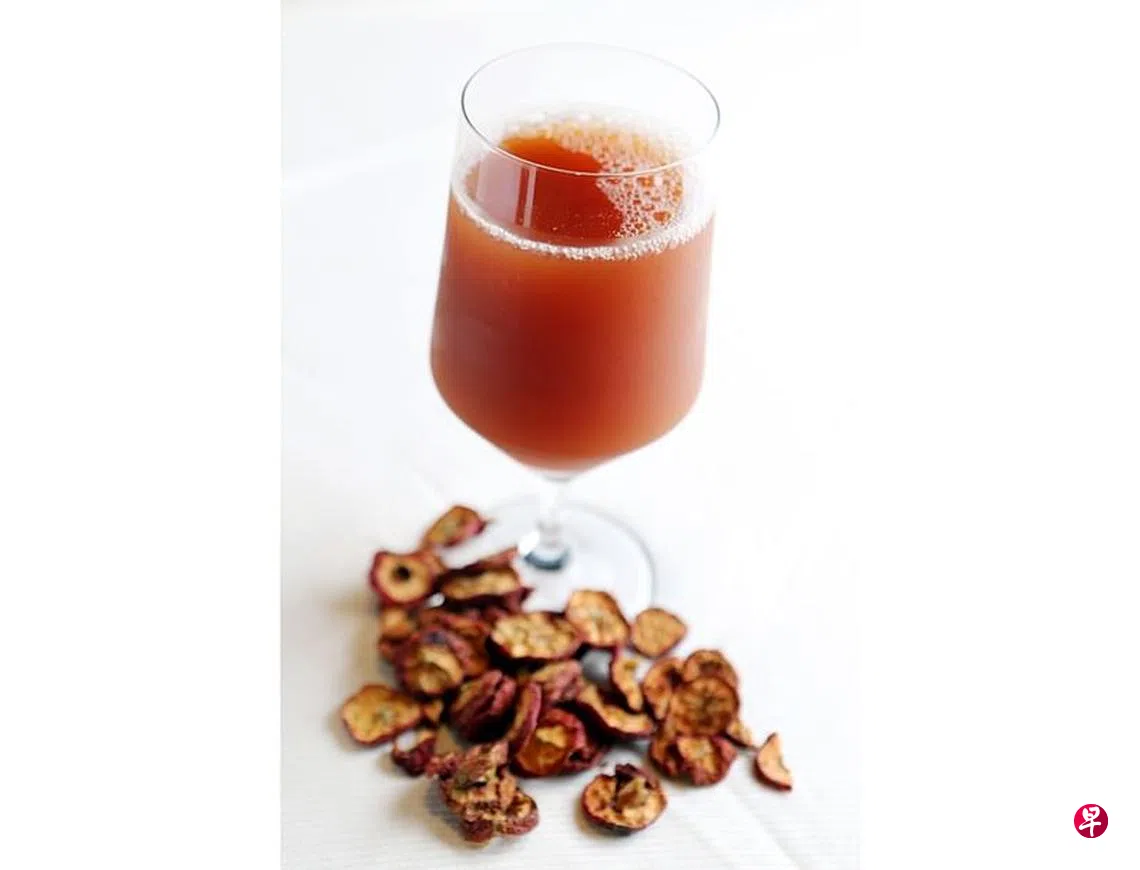 做法:山楂、麦芽洗净加水300毫升,煮沸,小火煮20分钟,去渣, 加入白糖调味。