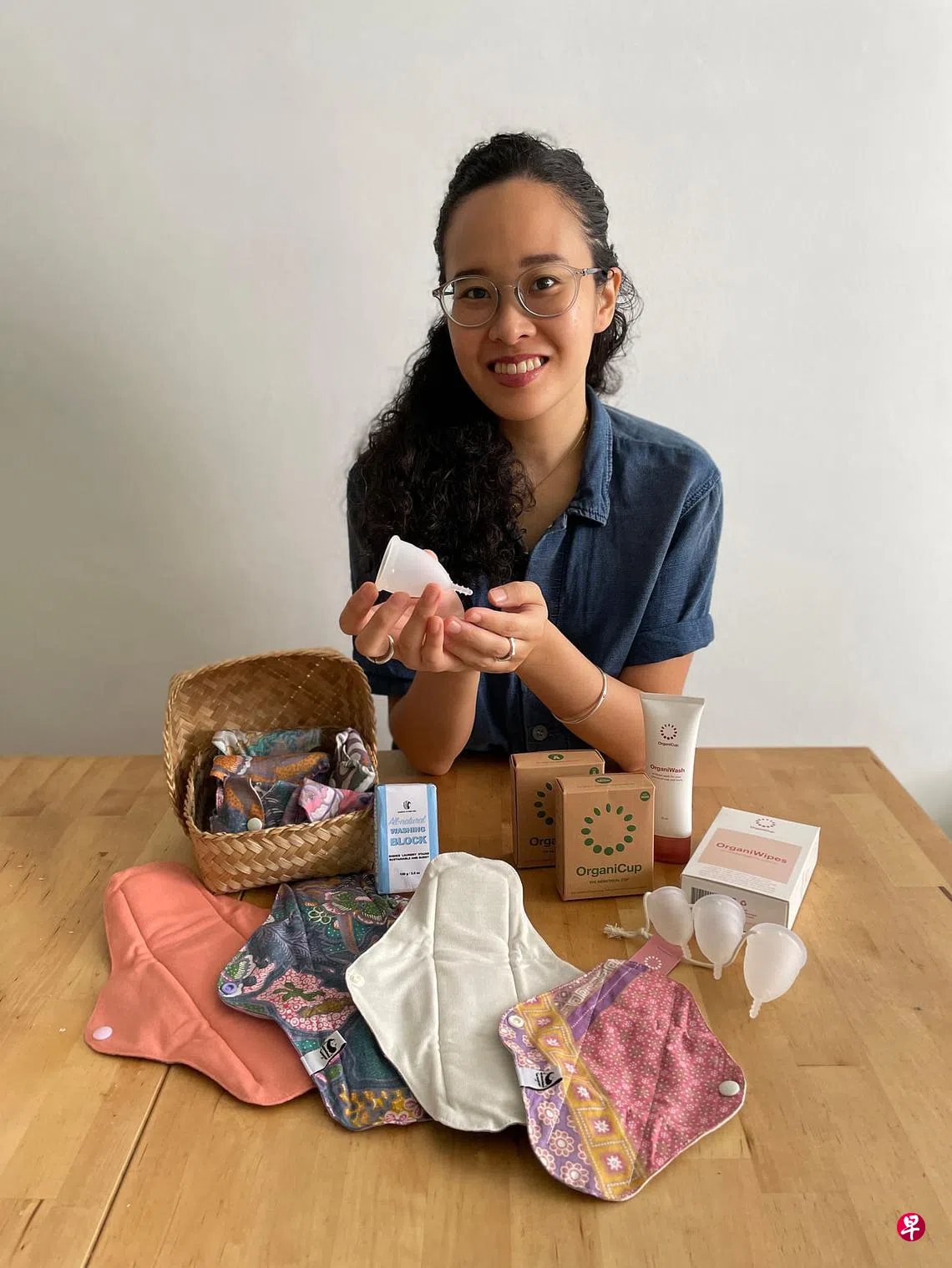 环保用品专店创办人蓝美娥(30岁)八年前下定决心改用月经杯,出发点是环保,因为不想继续使用即用即丢的塑料卫生棉。她在生活其他方面达到减塑减废的目标,经期用品是最后一个“关卡”。