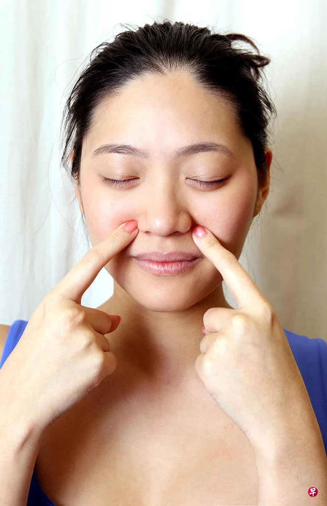 赵戈医师说,应对鼻敏感,迎香穴是主穴,能起到祛风热,通鼻窍的作用,可以帮助改善鼻塞、流鼻涕、流鼻血、鼻息肉等症状。另外有三个辅助穴:太阳穴、四白穴、攒竹穴。