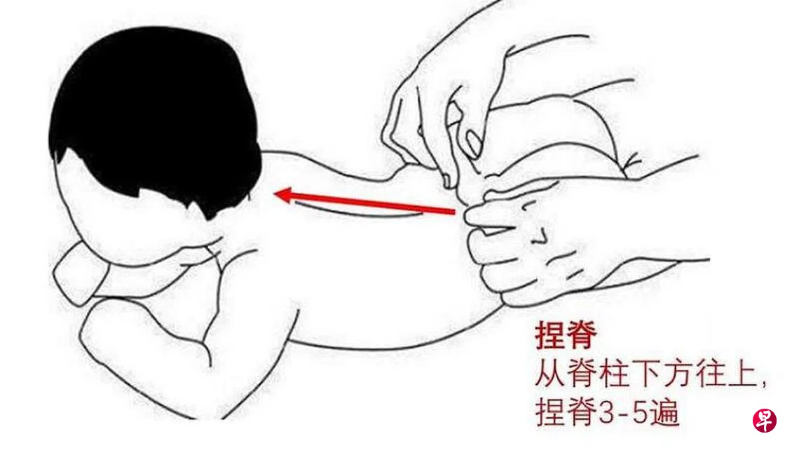 如何操作:可从孩子脊柱下方往上捏,3至5遍。