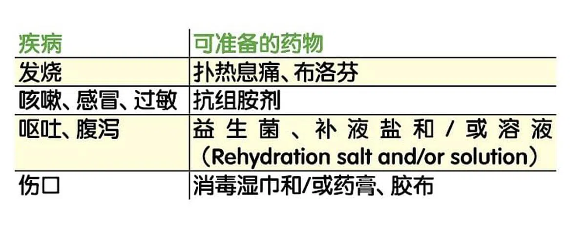 若孩童本身患有疾病,如哮喘、过敏、湿疹、惊厥等,建议出国前询问孩子的医生;医生可能根据孩子的病情,建议可携带的药物。