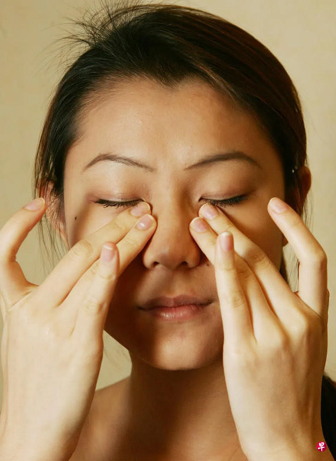 需要注意的是,按摩眼周力度不宜重;眼周容易长脂肪粒的人慎用此法。