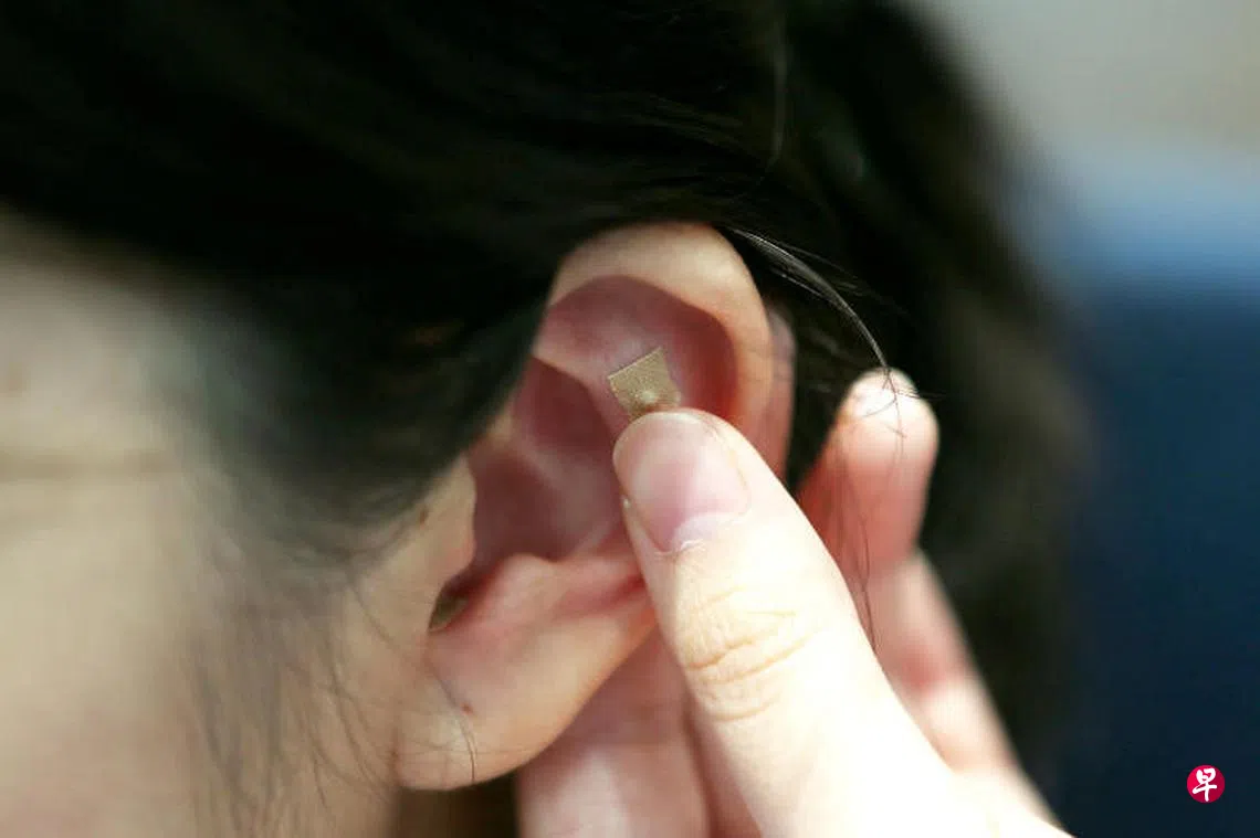 耳针则是利用王不留行籽贴压在两耳的穴位,如内鼻、肺、脾等,帮助通利鼻窍。