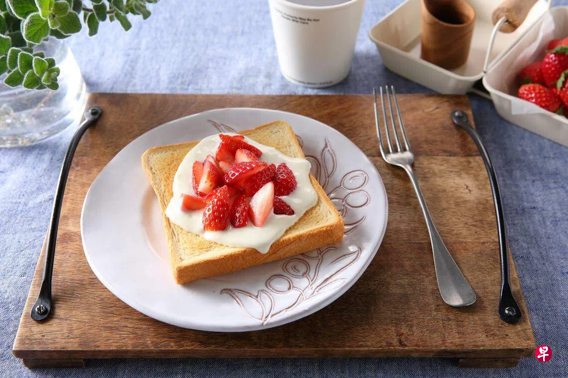 日式酸奶芝士酱草莓吐司