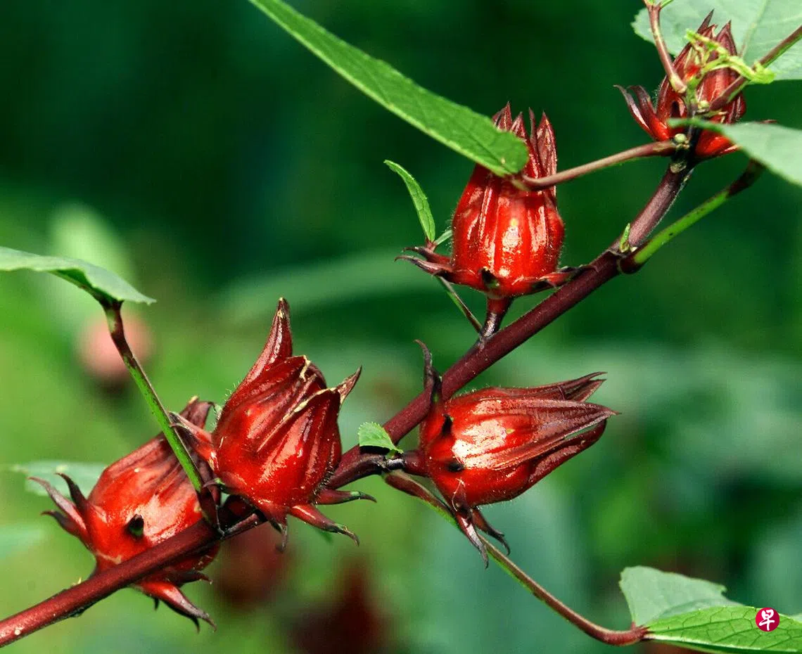 洛神花清爽酸味能清热祛滋腻,还能降血压;山楂能健胃、消积、降脂 。两者同用可促进脾胃消化功能,消除饱胀感,适合食积的患者。