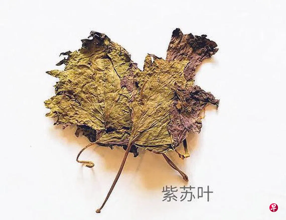 步骤:白米50克加水煮粥,粥成时加入干紫苏叶10克(或新鲜紫苏叶30克),再煮3分钟即可,吃时可加入适量黑糖。