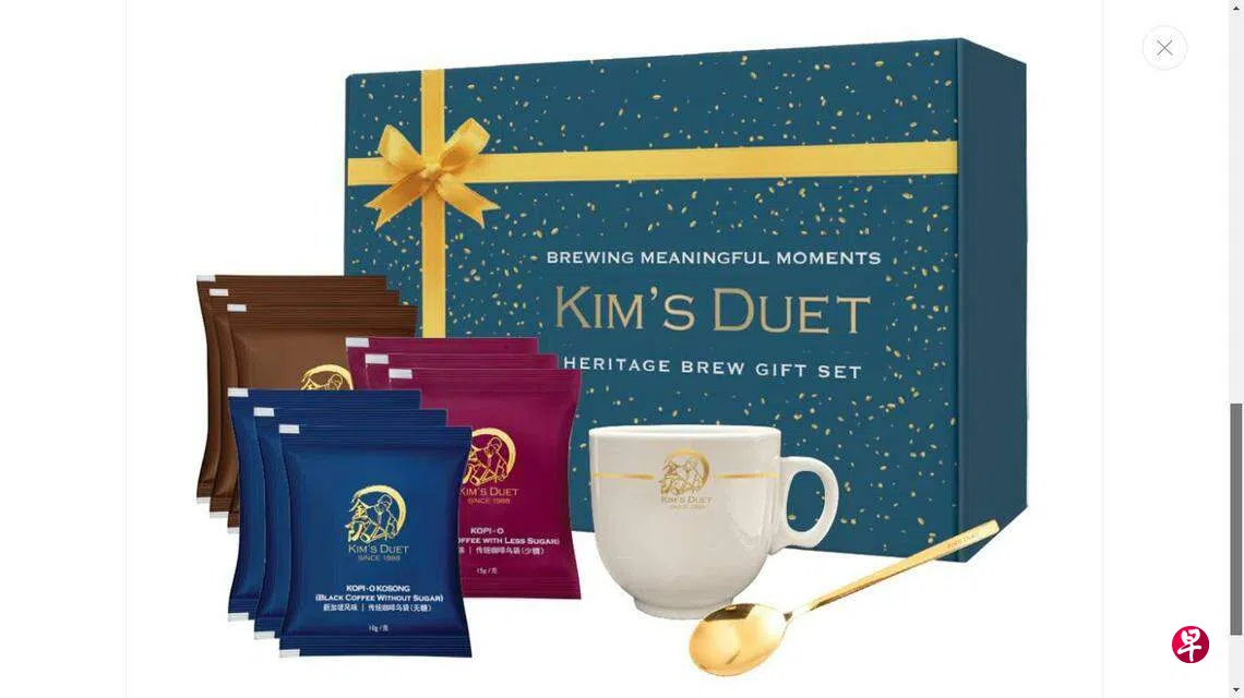 本地咖啡粉厂商金源源的零售咖啡品牌“金队”(Kim’s Duet)推出适合送礼的精美套组。传统咖啡套组包含三种咖啡袋:kopi o kosong(无糖咖啡乌)、kopi o siew dai(低糖咖啡乌)和kopi c siew dai(少糖咖啡加奶),饮料营养等级标签(Nutri-Grade)分别为A、B和C。三种咖啡的营养表清楚印在包装上,每种咖啡的热量、脂肪和糖分一目了然。