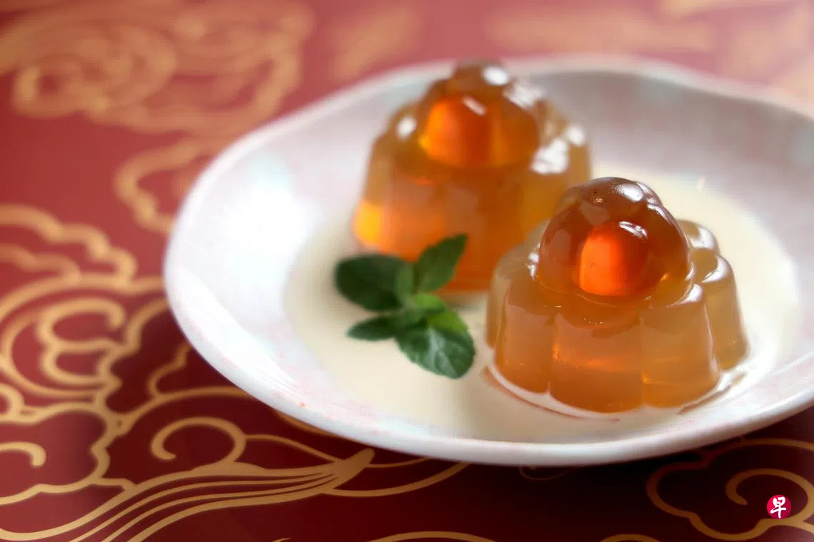 龙年健康年菜:“龙锦情深”乌龙茶冻订户赠阅文章乌龙茶的功效包括抗炎,促进消化,分解脂肪等,制成茶冻清凉解暑,正好可解新年美食之甜腻。 (龙国雄摄)龙锦情深乌龙茶冻食谱作者:陈映蓁过年甜点选择多,以乌龙茶做茶冻,建议减少糖分或完全不加糖,享受乌龙茶的自然清香。乌龙茶属半发酵茶,富含抗氧化剂(茶多酚、茶黄素、茶红素等),也有抗炎、促进消化和分解脂肪等功效。乐活食谱年菜年菜食谱上一篇健忘未必是失智 谵妄发病快易被忽略下一篇龙年健康年菜:芝麻虾仁龙口粉丝购买此文章