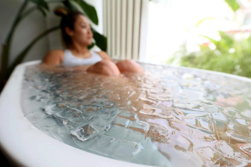 Trapeze的冷浸水温约为4摄氏度,记者听从翁伟湄的建议先用双手试温,接着把双脚踩进冷浸缸,再慢慢坐下,让水位大约到颈部下方,全身细胞顿时“惊醒”。水太冷,心跳加快,利用之前练习的4-7-8呼吸技巧,把全副心思放在呼吸上,而不是一直想着“水好冷!”,感觉比较能耐冷,在水里待了差不多一分钟。