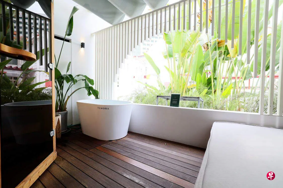 有了一次冷浸经验,原以为Como的冰水浴大同小异,但水温差两三度其实非同小可。当双脚踩进1摄氏度的冷水时,感觉快麻了。或许也因为冰水浴是在室内浸泡(Trapeze的在有盖阳台),少了直射阳光,感觉更冷一些。