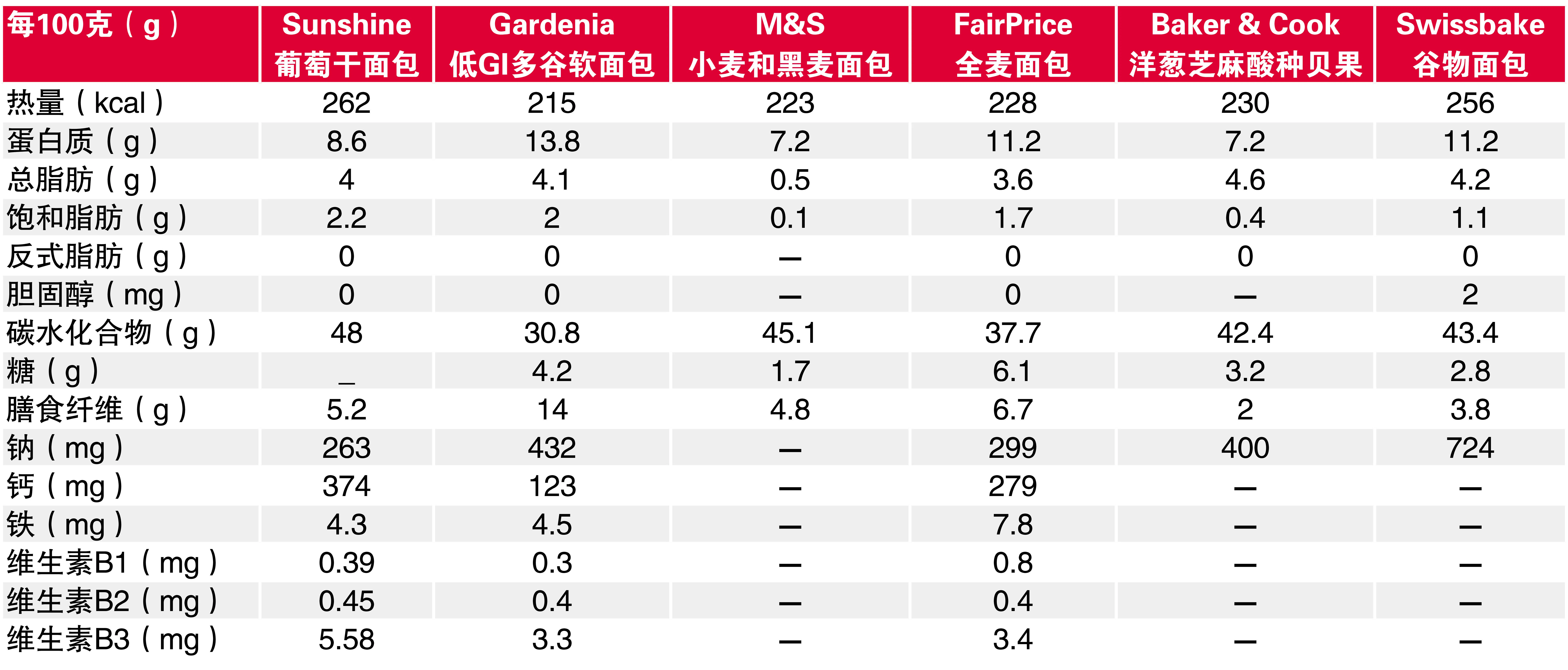 全麦面包的营养比白面包丰富,比较不同品牌后发现平价超市(FairPrice)自家品牌是CP值(性价比)较高的一种。它的大部分营养素和其他品牌大同小异,且钙含量明显较高。其味道虽然未必能和独立品牌相提并论,但价钱亲民:300克和500克装售价分别是$1.85和$2.30。