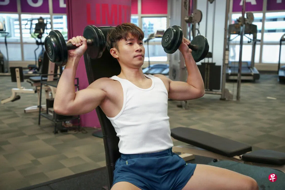 答:如果四天健身,另外两三天则会打羽毛球和跑步。跑步跑5公里,有时用跑步机,有时在户外。我平均每周健身四至五天 ,每次大概一小时 。坦白说,我是为了体态好看和健康,所以不会疯狂健身,更没想过去参加健美比赛。