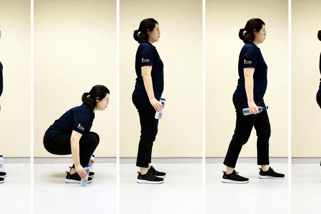 以下每个动作重复八次为一组。每次练习一组,四个运动可接连着做。