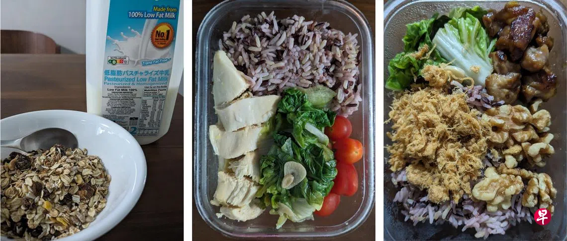 休息日通常会外食,可能到小贩中心、咖啡店或其他食肆,但无论去哪里,我一般避开煎炸类食品,也会考虑是否有足够蔬菜,料理的油脂和盐分是否多过平时所摄取的。