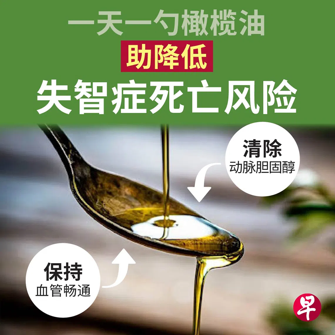 研究发现,那些每天至少摄取约7克橄榄油的人,死于失智症相关疾病的可能性降低28%。