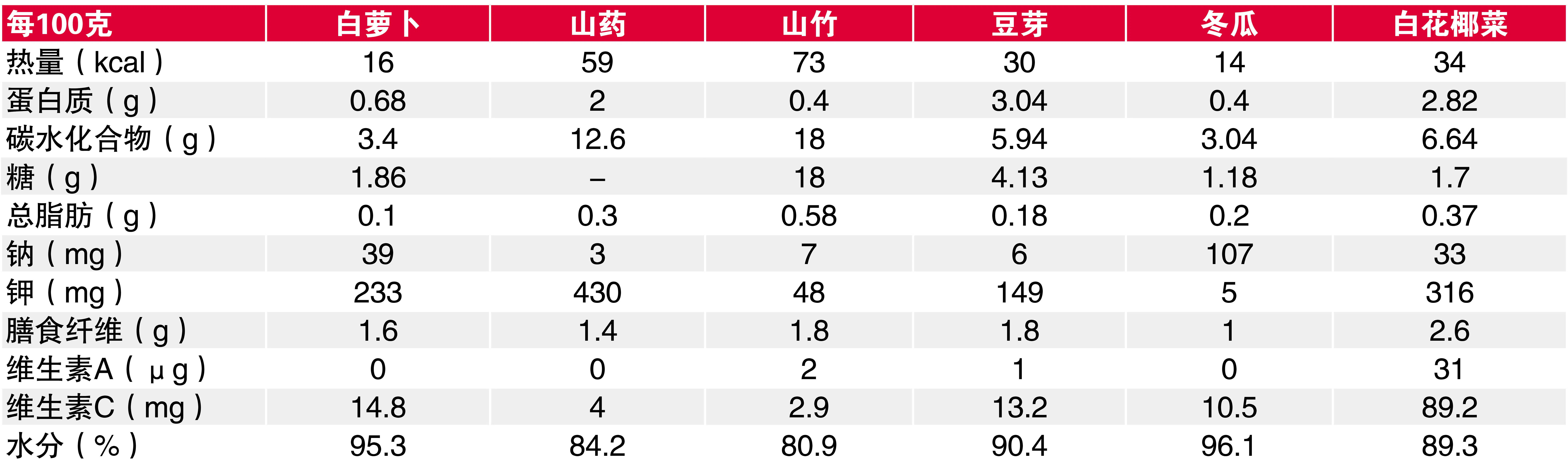 白萝卜(又称菜头),虽然名字和红萝卜很像,但后者是伞形科, 白萝卜是十字花科,两者的营养也不同。白萝卜的热量是红萝卜的一半,维生素C含量比红萝卜高,但纤维较少,不含维生素A。它包含一种广泛存在于十字花科蔬菜的辛辣成分:异硫氰酸酯(isothiocyanate),有助于抑制血管发炎。根据日本国立癌症研究中心的调查,食用较多白萝卜的人,死于心肌梗塞等心血管疾病的概率低30%。