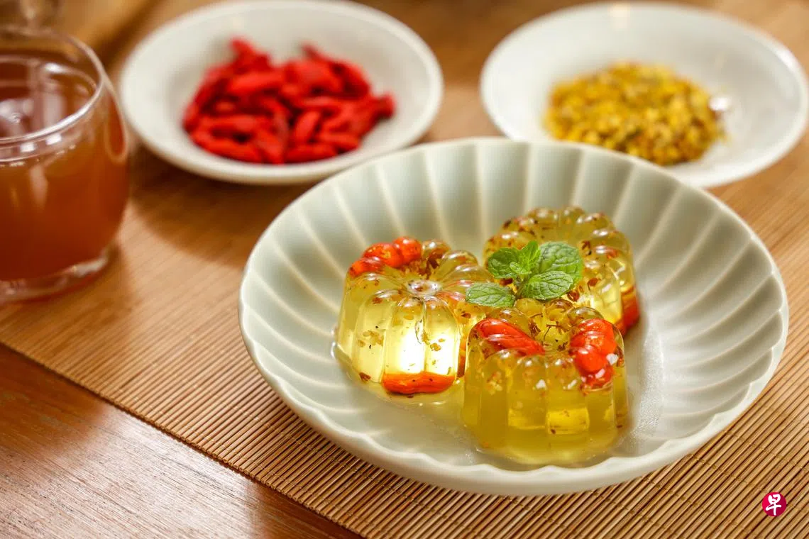 中医佳节养生食谱:桂花枸杞冻+黄金罗汉果山楂饮订户赠阅文章餐后来一份桂花枸杞冻有助解腻,桂花的清香还能清除口臭,是不是比圣诞蛋糕更诱人? (叶振忠摄)药食同源,曾接受专业烹饪培训的伍婉君医师,以The TCM Chef(中医药厨师)为名,研发保健食谱和提供膳食治疗。以下是她特别为《联合早报》读者提供的养生食谱,希望大家在佳节聚餐时,亲自试做这些对身体负担较小,具保健功效的甜品和饮料。1.桂花枸杞冻材料:做法:食谱乐活保健中医中药健康饮食甜品中药上一篇接受检测做治疗 HIV感染者也能如常生活下一篇佳节美味难挡 五诀窍减轻胃负担购买此文章