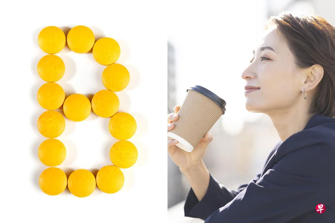 加拿大自然疗法医生和畅销书作家简妮鲍林(Janine Bowring)说, 不论是B群或单独的维生素B如维生素B12,都不能与咖啡一起服用。因为它们是水溶性的,而咖啡是天然的利尿剂,当我们喝咖啡时,体液会流失得更快。因此,不要在喝咖啡的同时服用维生素B群。