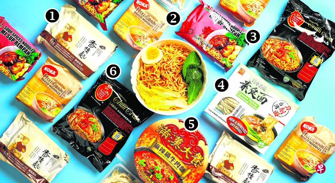 本地制造的Prima Taste(百胜厨)辣椒螃蟹拉面采用非油炸面条和真正的辣椒蟹酱包,而非调味粉。该产品富含蛋白质与纤维,使用虾蟹壳、香料、洋葱、大蒜和胡椒粉等调味,兼具海鲜鲜香与辣味,但属于中高热量的快熟面。
