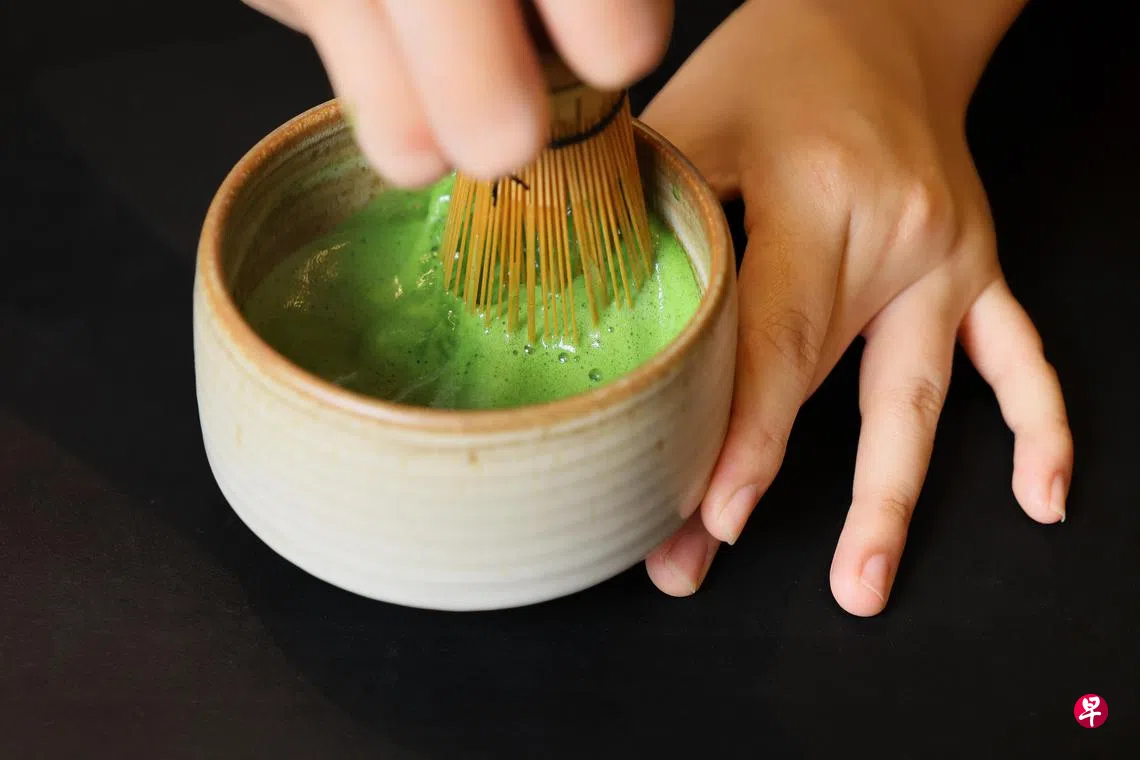 相较于抹茶口味的加工饮食,直接用热水冲泡抹茶粉是更纯粹,对身体负担较小的享用方式。
