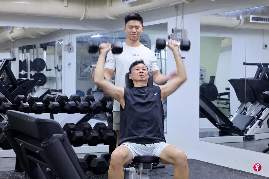 在碧山22街的健身房A Gym见张加发(64岁)精神奕奕地做负重训练,难以想象他三年前确诊患上肺癌及第四期肾癌。更让人讶异的是,他在术后接受免疫治疗时,除了恢复跑步习惯,还积极投入重训。