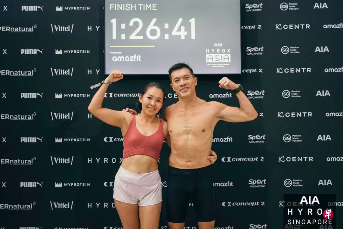 约两年前,她加入一家健身中心,展开更系统的训练。见到妻子健康的跃进,丈夫丘国权深受激励。一年后,他也加入健身行列共同训练,并以搭档身份,参加今年6月本地举行的Hyrox亚洲公开赛。双人在混合组获得季军的优异成绩。