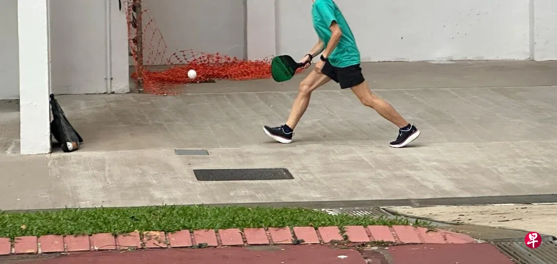 那天黄昏,我在一座组屋楼下停下脚步,是因为一阵突兀而清脆的“啪、啪”声。一名中年妇女站在组屋底层外,把白色的墙壁当成球场,独自挥拍打着匹克球。球一次次撞上墙面又反弹回来,她动作利落,神情专注,像是进入了自己的小世界,玩得不亦乐乎。
